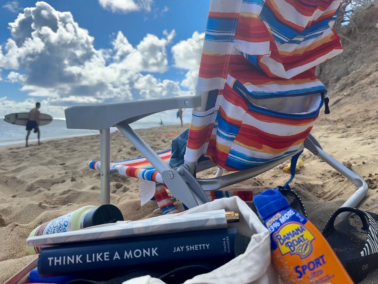 After one of the more stressful weeks of my year, I zipped a few books, some snackies, sunscreen, and coconut water into the pocket of my beach chair backpack to scooter down to Diamond Head Beach.