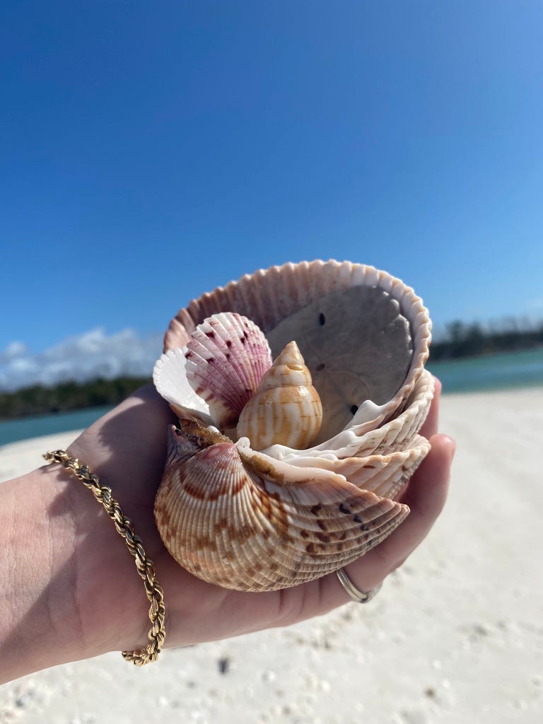 The shells on the beach are all different. Some are smooth, like the conch, or rugged and rough, like coral, or other transparent, delicate mollusks I cannot name. Each one shaped by a different tide, a different depth, a different length of time in the water.